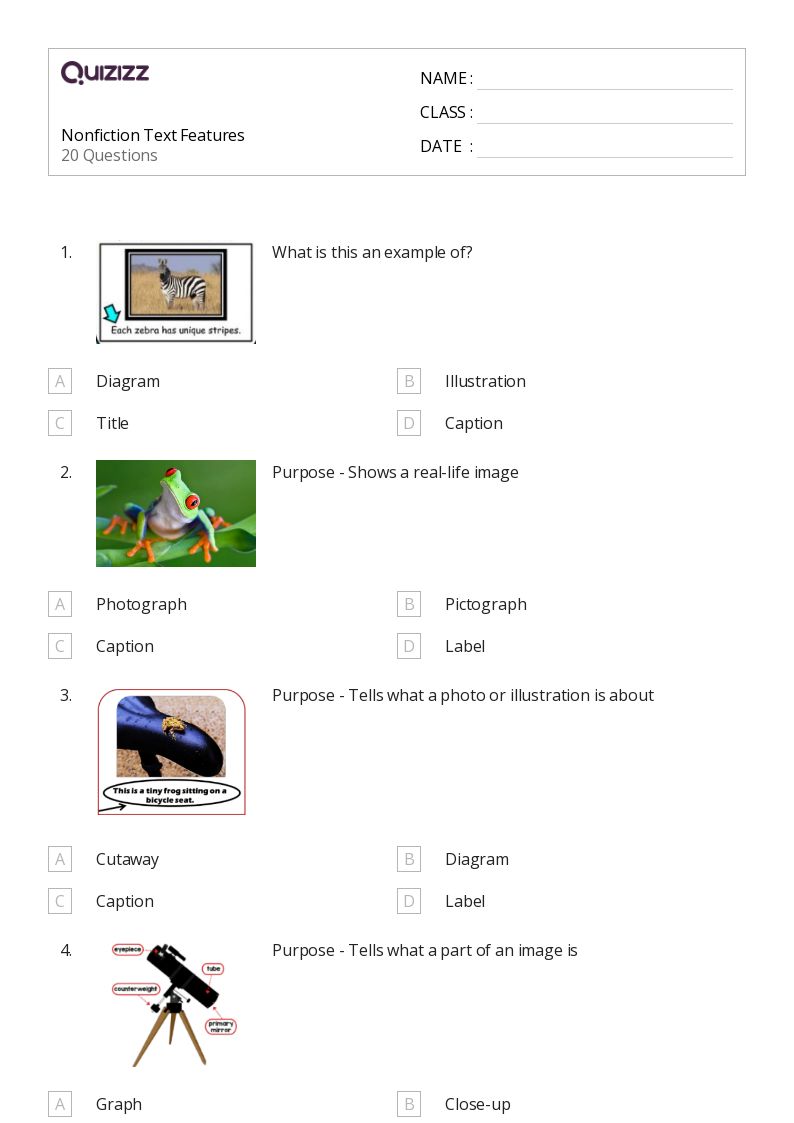 50+ Nonfiction Text Features worksheets on Quizizz Free & Printable