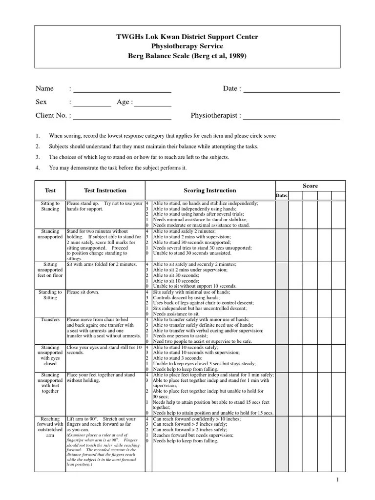 Berg Balance Scale Form Fill Out, Sign Online and Download PDF Templateroller